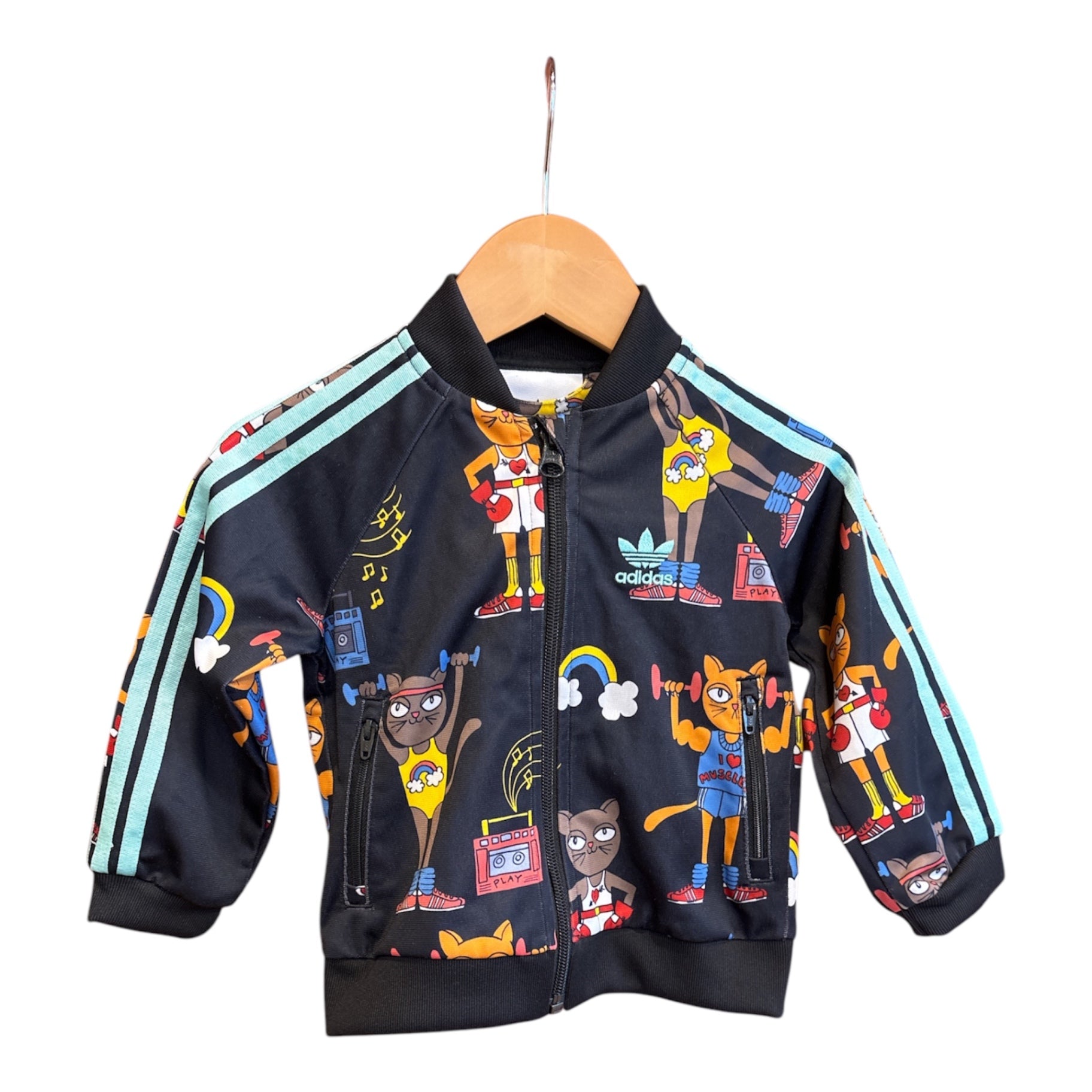 This playful Adidas jacket features a fun cartoon print that adds a burst of personality to any outfit. The classic black base serves as a perfect backdrop for the vibrant characters, making it a standout piece. Crafted from durable polyester, it ensures warmth and comfort without compromising style. Ideal for both casual wear and athletic endeavors, this jacket combines practicality with fun fashion. Its signature trefoil logo adds a touch of iconic brand recognition. A must-have for those who love to express their unique style.