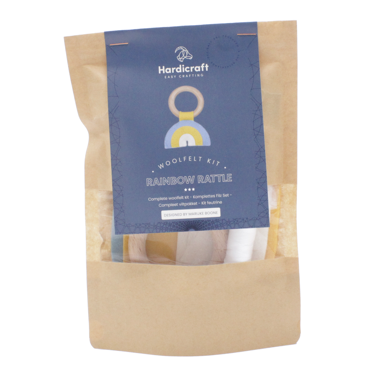Your baby is sure to have hours of fun with this cheerful and colorful rainbow rattle! This package contains a pattern, high-quality wool felt, padding and all the supplies needed to get to work. Thanks to the clear multilingual instructions and working drawings, everyone can now make this beautiful felt creation! The rattle is approximately 12 cm high and 9 cm wide.