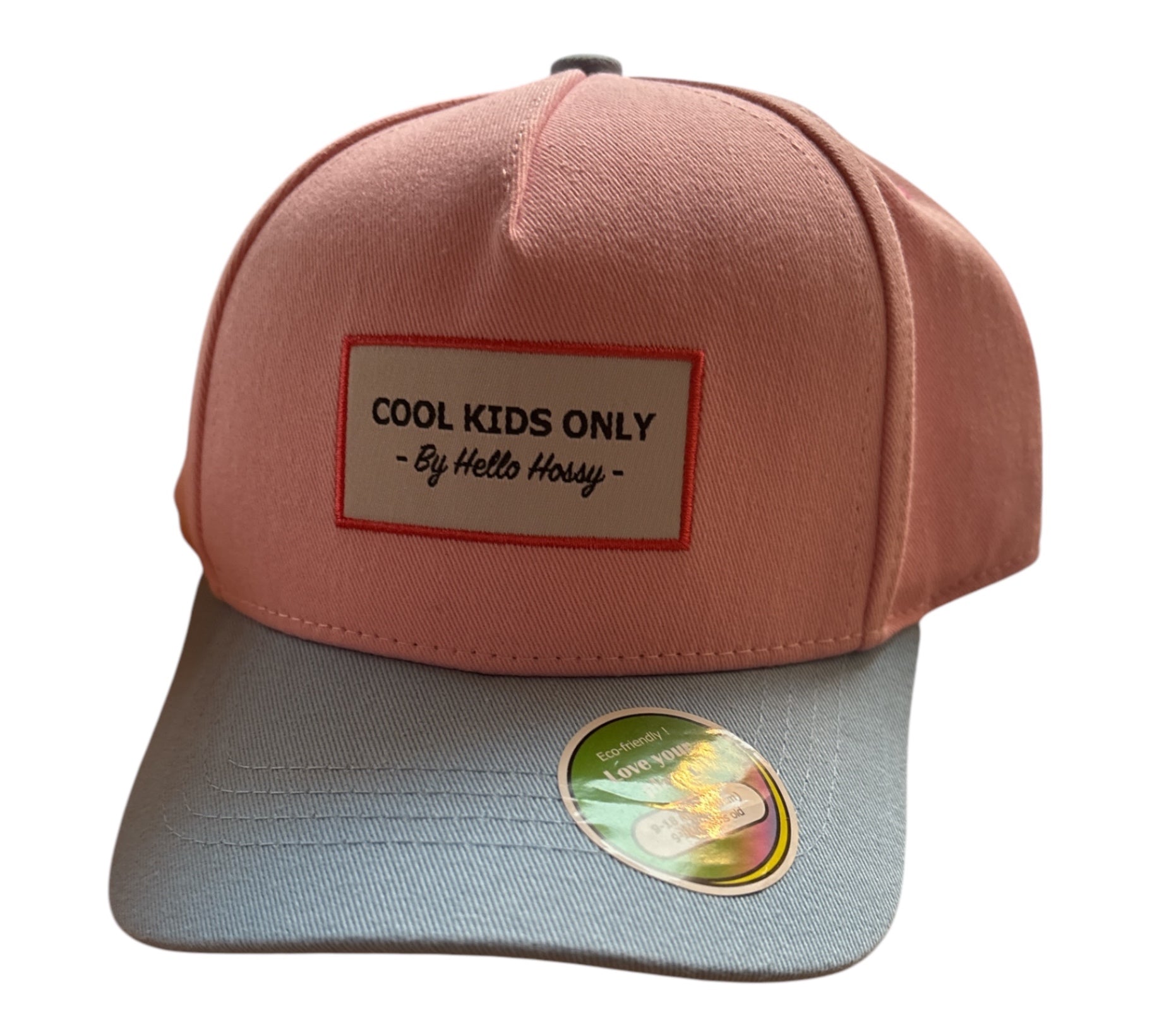 This trendy baseball cap by Hello Hossy makes a playful statement with its 'Cool Kids Only' badge, perfect for little trendsetters. Crafted in soft cotton, it combines a vibrant pink crown with a light blue brim for a fun and fashionable contrast. Ideal for sunny playdates or casual outings, this cap effortlessly adds a touch of cool to any outfit. Its comfortable fit ensures it stays in place while your child explores and plays. A must-have accessory for those carefree days, this cap effortlessly merges style with practicality.