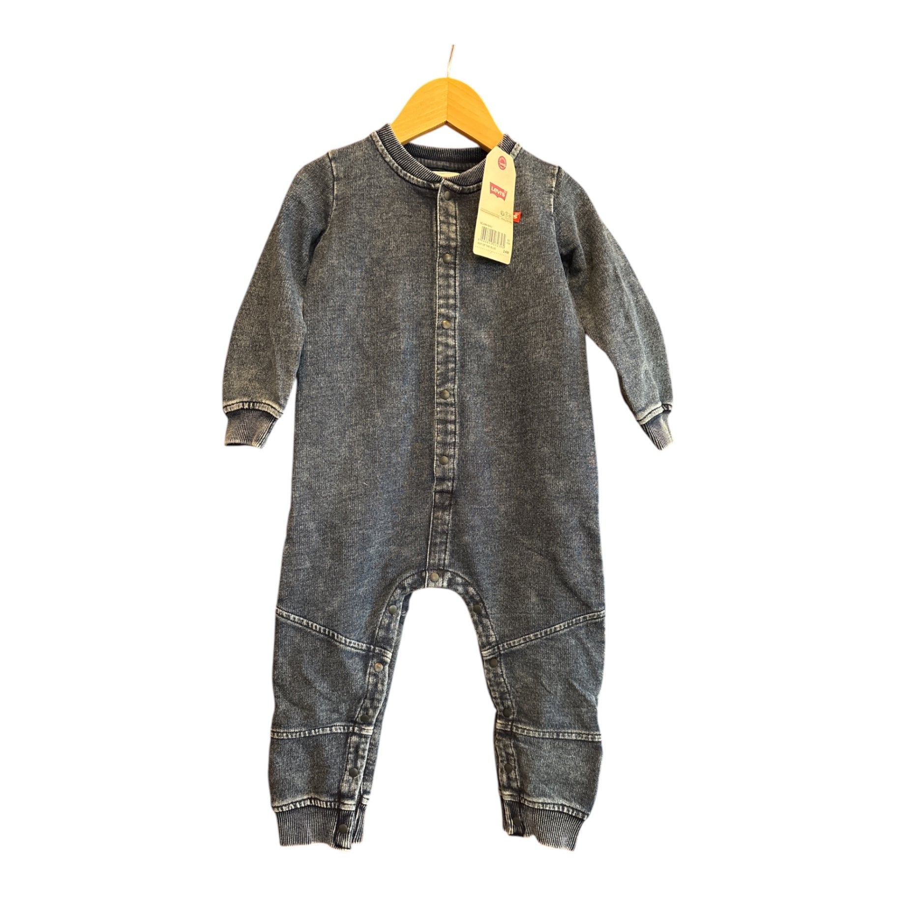 This adorable Levi's grey denim jumpsuit combines effortless style with cozy comfort for your little one. Crafted from durable denim, it's designed for easy wear and maximum mobility. The neutral grey tone gives it a versatile, timeless look while maintaining a playful edge. Perfect for an everyday casual outing or a family gathering. The full-length sleeves and legs ensure your baby stays warm in cooler weather. Featuring a classic button closure, it offers both convenience and flair. A quintessential piece for any trendy infant wardrobe.