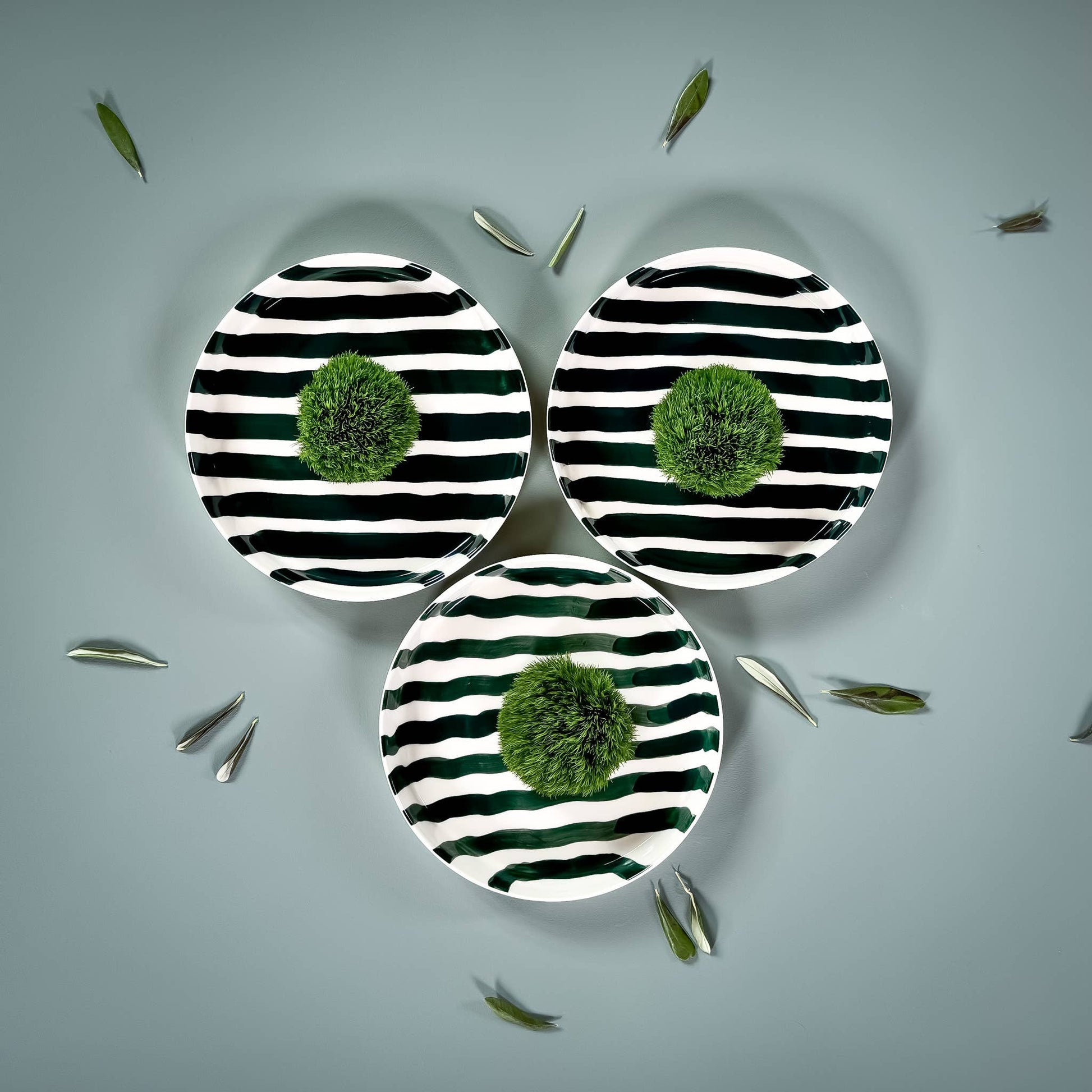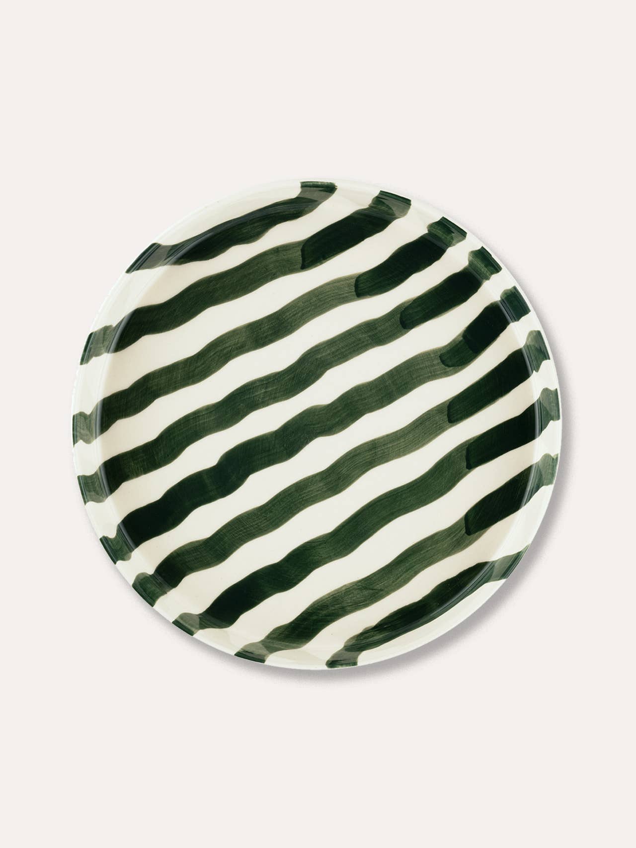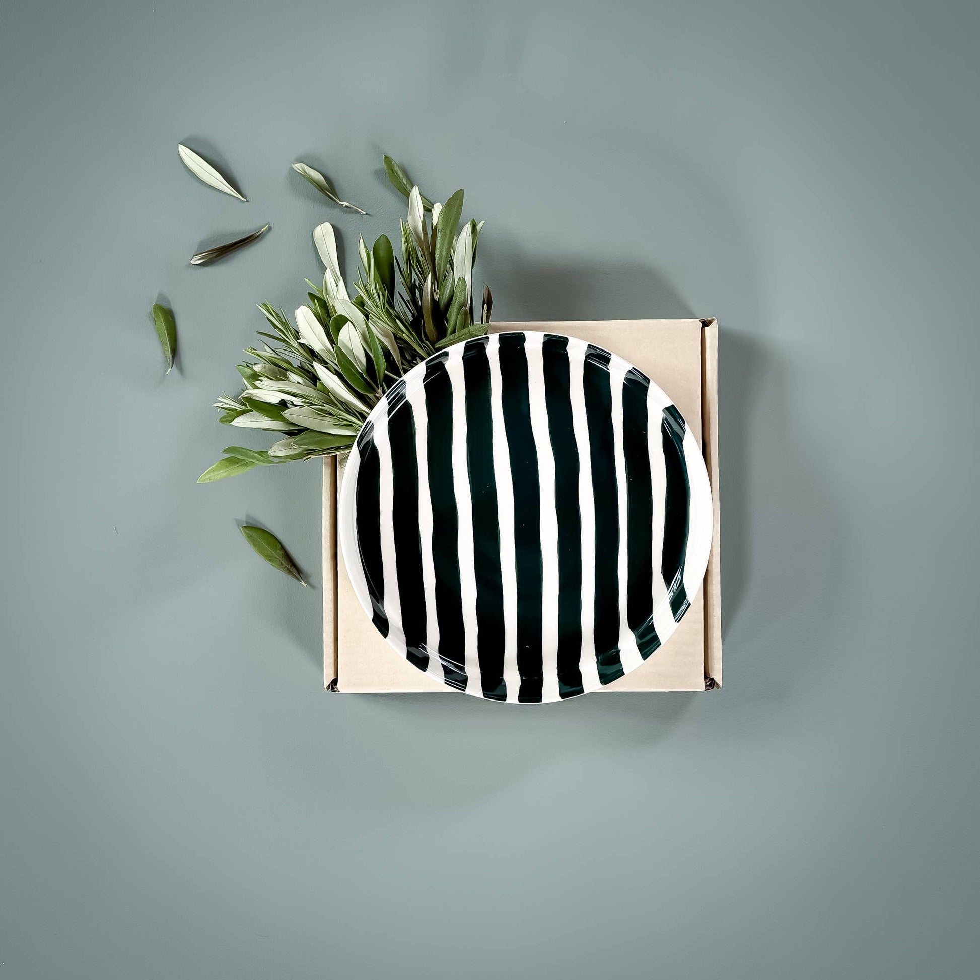 The plate that takes you on a short trip to Italy. With our artisan-made ceramics, each piece is unique. Every stripe and glaze was applied by hand. The plate has an approximately 2 cm high rim inside, ensuring nothing spills or gets lost. The size of the plate is ideal for a lunch portion, a piece of cake, or a sandwich in the evening. One size fits all. - high-quality ceramic (NOT earthenware) - each piece hand-painted (unique) - individually & sustainably packaged - dishwasher safe - food-safe & microwaveable - Diameter 21 cm - Height 3 cm (outside)