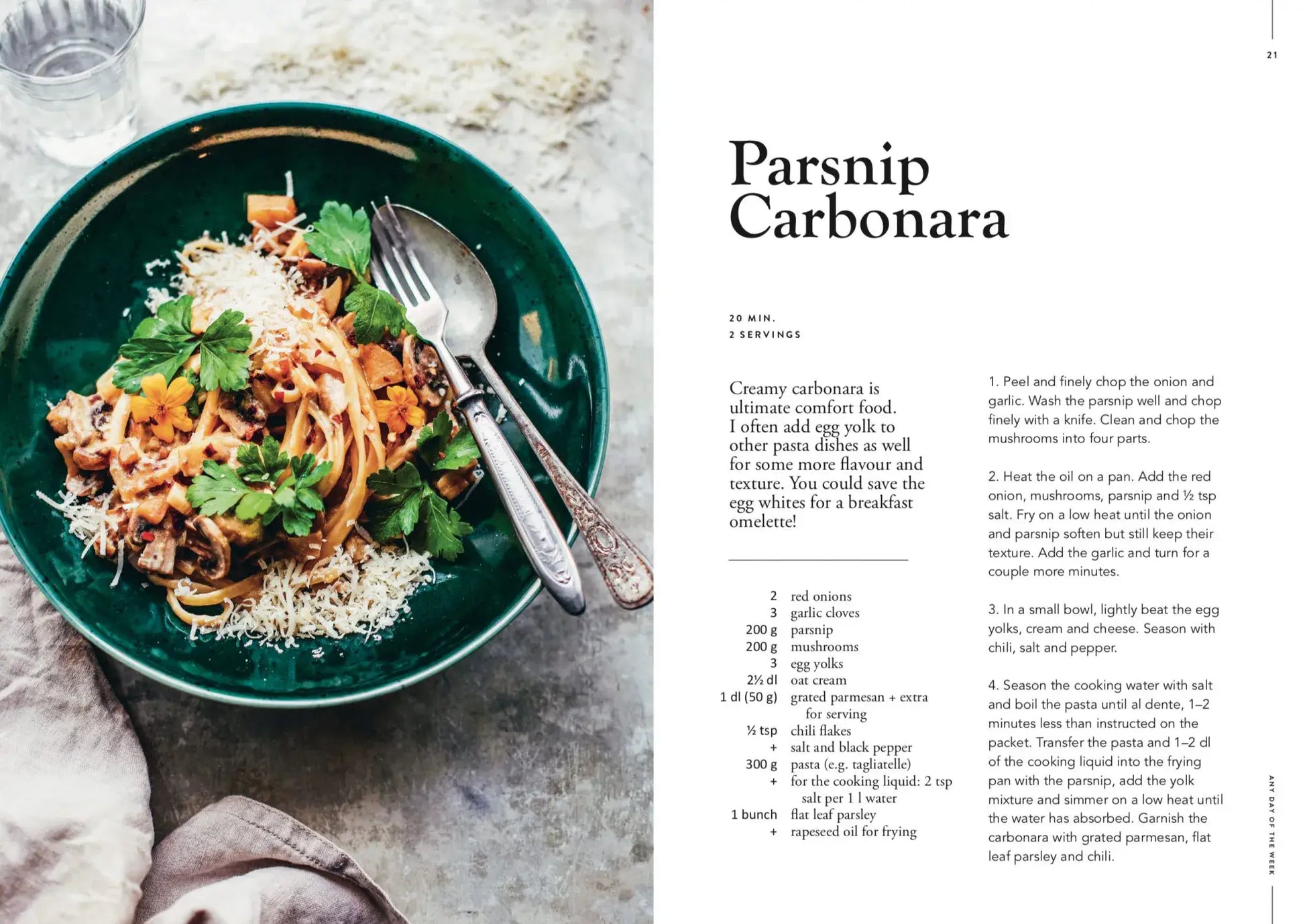 With a focus on vegetables, Veggies, every day of the week opens with quick and easy recipes for weekdays. Trendy, delicious appetizers will encourage you to invite guests over even in the middle of the week. Weekends are about stews simmering for longer, kneading your own pasta dough and inviting friends and family over to join in the fun.